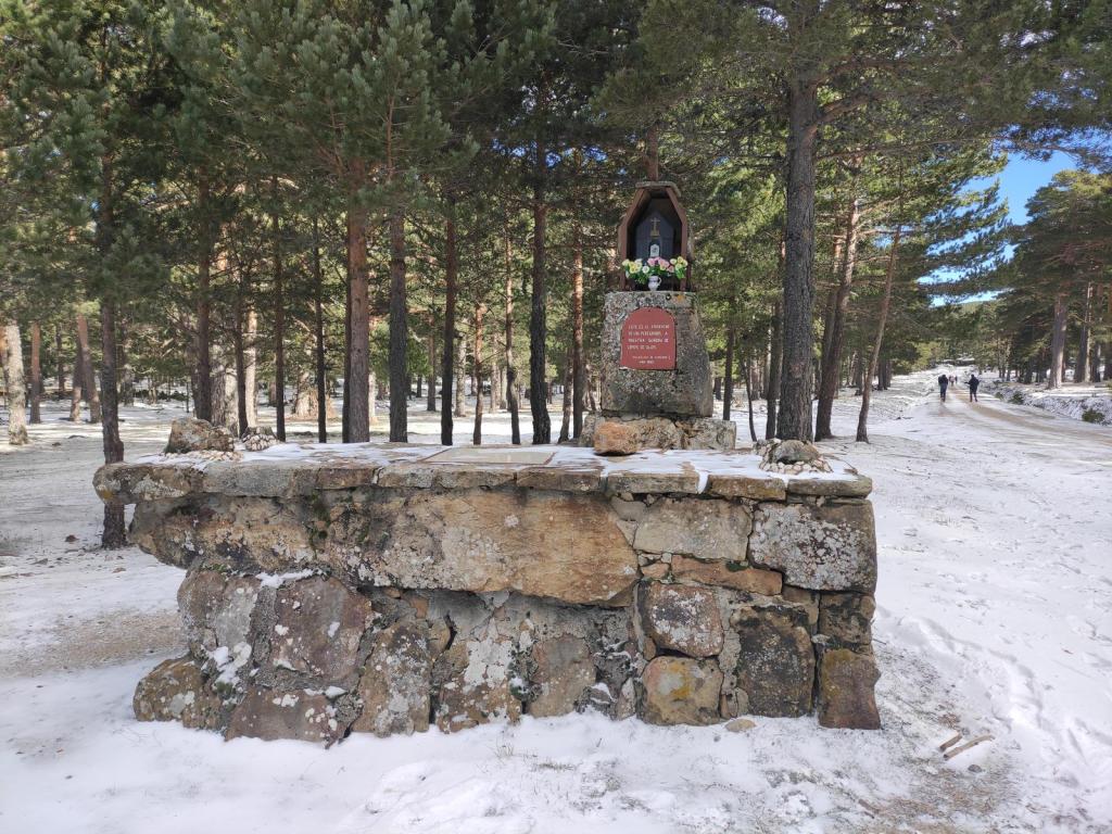 Volvemos de nuevo a la pista forestal, cruzamos a ver un árbol curioso que hay al otro lado del camino y desandamos 1,5 kms para volver de nuevo al punto donde se encuentra el horno de pez. Ahora seguimos de frente hasta llegar a una especie de altar que simboliza un punto de encuentro de peregrinos. Un pequeño paseo por la GR-86 y habremos llegado al Refugio de Bocalprado. Haciendo un giro de 90%, nos desviamos a la izquierda para, por un sendero perfectamente señalizado por las señales rojas y blancas de la GR-86 junto con las marcas verdes y blancas de ruta local, cruzar un puente rústico de piedra y descender durante 1,5 km hasta una intersección en la que abandonamos la GR-86 que va hasta Covaleda. Nos vamos por la izquierda y, muy pronto, estaremos bajando por el sendero que nos vió partir.