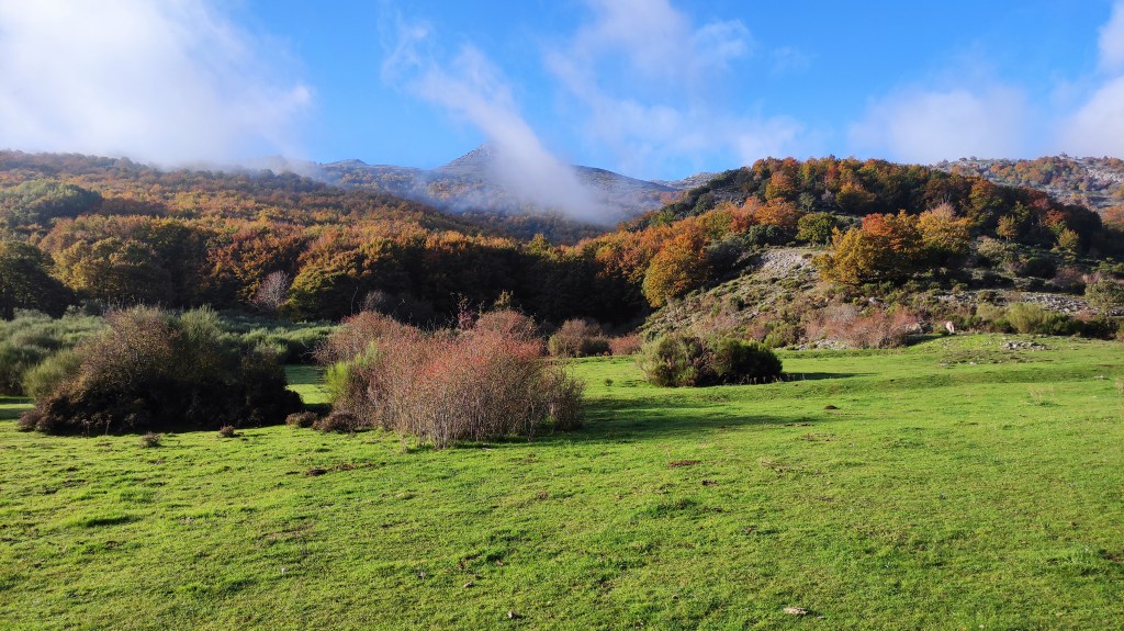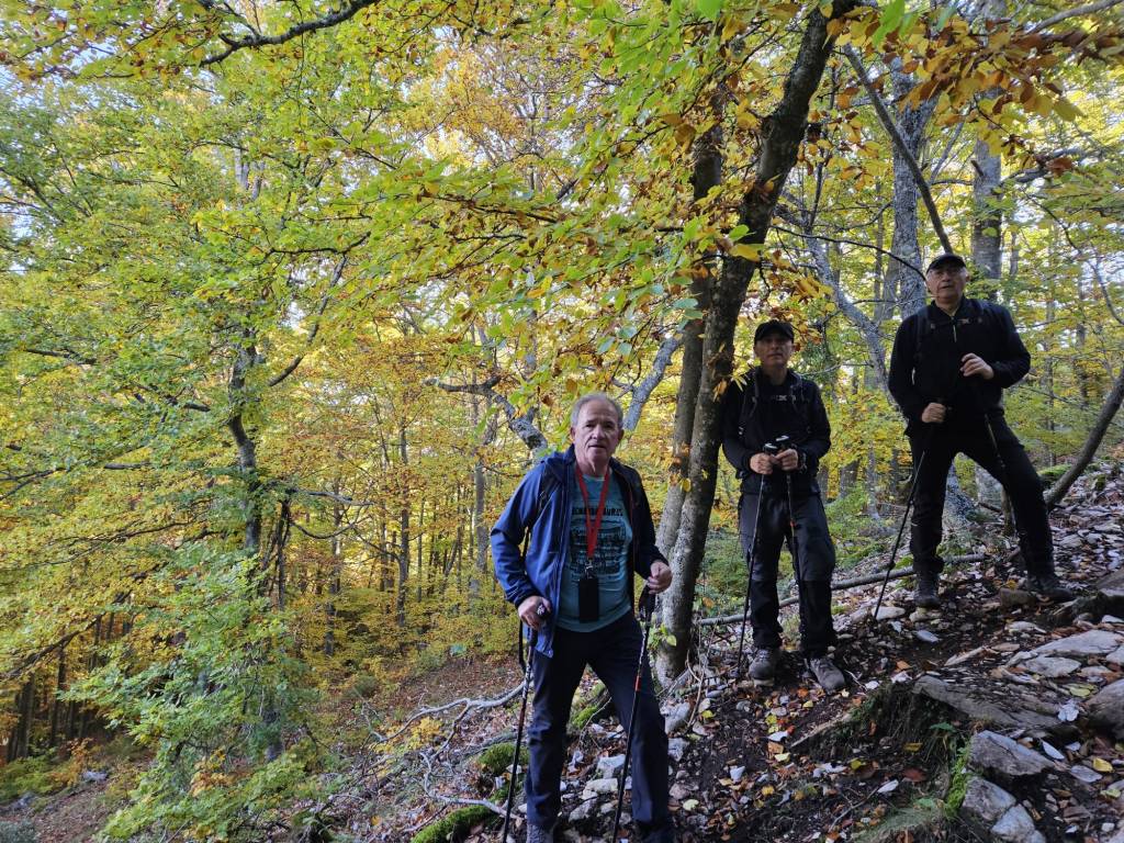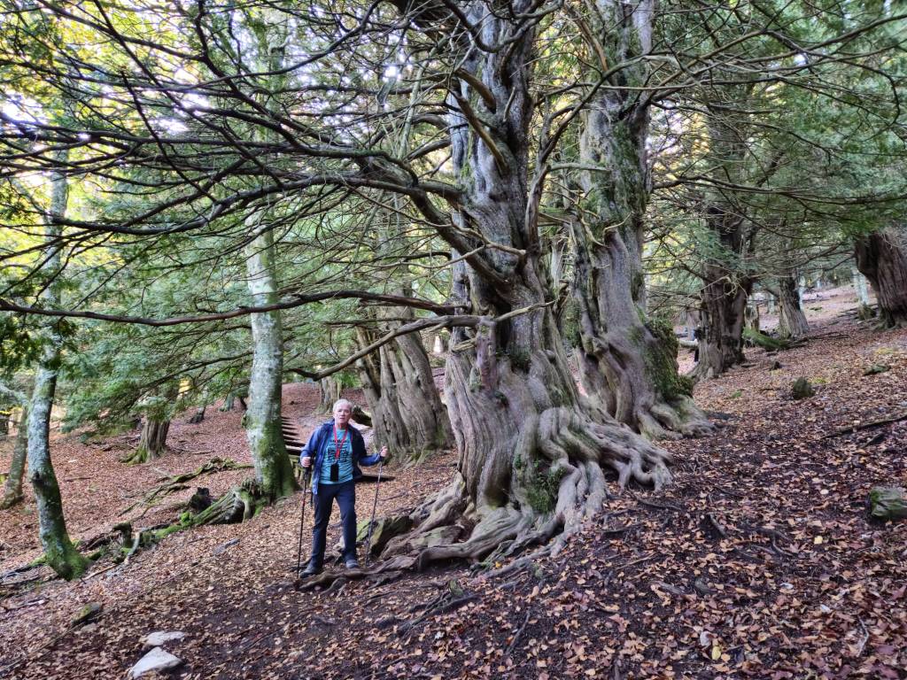 Ya en el hayedo, comenzamos una pronunciada subida , perfectamente escalonada en alguno de sus tramos y cubierta de hojarasca en casi todo el recorrido, que nos asciende hasta la parte superior de este bosque en cuyo interior se encuentra la Tejeda de Tosande. Impresionados por los magníficos ejemplares que flanquean la senda, nos detenemos varias veces a contemplar varios grupos de tejos singulares. Seguimos ascendiendo para apreciar una hermosa vista de la Sierra Palentina, en la que identificamos el Curavacas nevado.