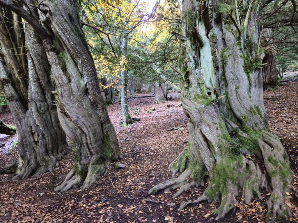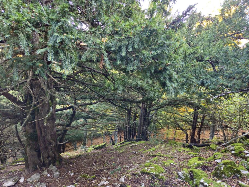 En estos bosques, los tejos crecen en una cota comprendida entre los 1300 y los 1500 m y prefieren sustratos calizos para su desarrollo. Cabe destacar que no aparecen aislados, sino formando pequeños grupos, así como sus curiosas y raras formas con troncos retorcidos y huecos en los que anidan aves y mamíferos de escaso tamaño.