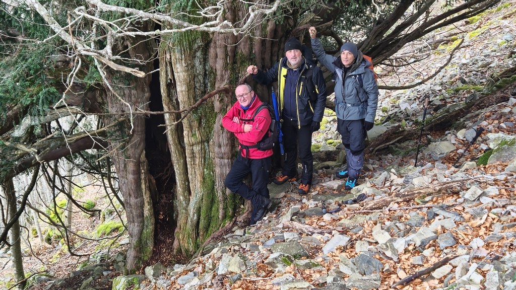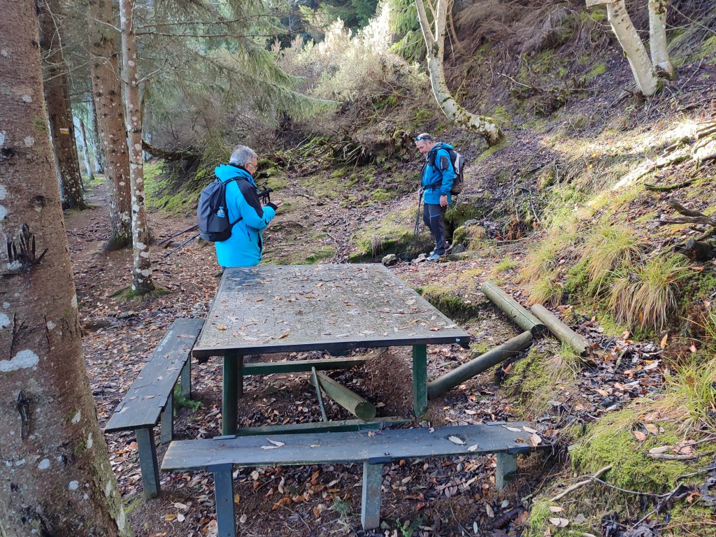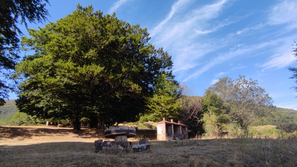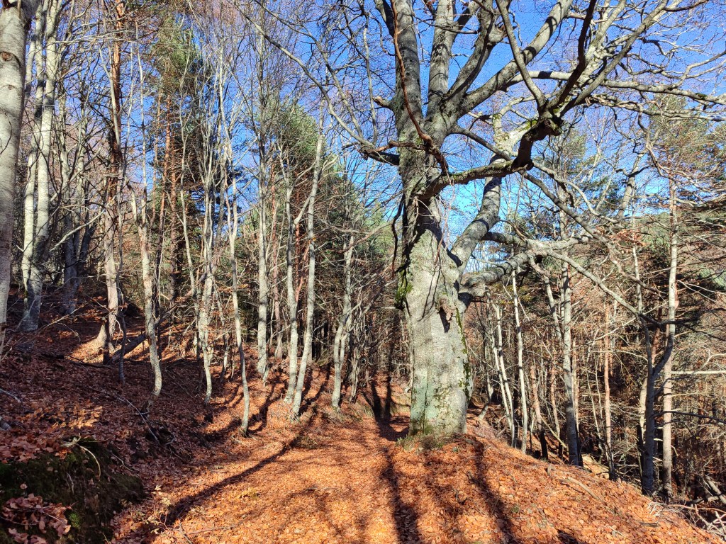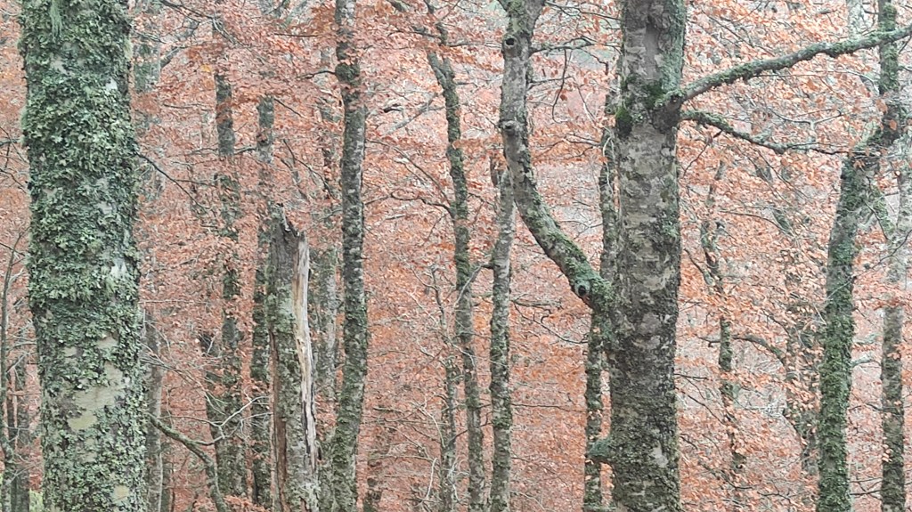 En el Refugio de la Pasada nos vamos por un amplio y empinado camino forestal en busca del Hayedo del Acebal. A la llegada, llama la atención la variedad de colores propios de esta época otoñal y sorprenden el silencio y la inmensa paz que reinan en el lugar. Dejamos el hayedo y, por un pequeño cortafuegos con una empinada cuesta, avanzamos hasta el Cerro de San Antonio. Estamos llegando a nuestro gran objetivo: la Senda de la Muñeca. Entre hayas, primero; pinos negrales , después, y , de nuevo, entre hayas, por una hermosísima vereda cruzamos este lugar mágico, cargado de inmensa belleza y sosiego, de peculiares y agradables olores, y lleno de una luz brillante que, con la salida del sol, atraviesa los árboles haciendo hermosos reflejos y figuras. Descansamos y reponemos energías en la mesa que hay en el cruce del camino del Nacedero. Luego, toca bajar una cuesta muy pronunciada. Siguiendo las marcas de los árboles, alcanzamos fácilmente el nacedero. En el camino hasta la Pasada, vemos brotar el agua por todos los lados y son varios los arroyos que van engordando el cauce del rio Oropesa. También llaman la atención dos belenes bien conservados en una pequeña pradera rodeada de hayas. Un lugareño nos explica que el nacimiento se deja allí todo el año y que los senderistas lo respetan y lo cuidan.