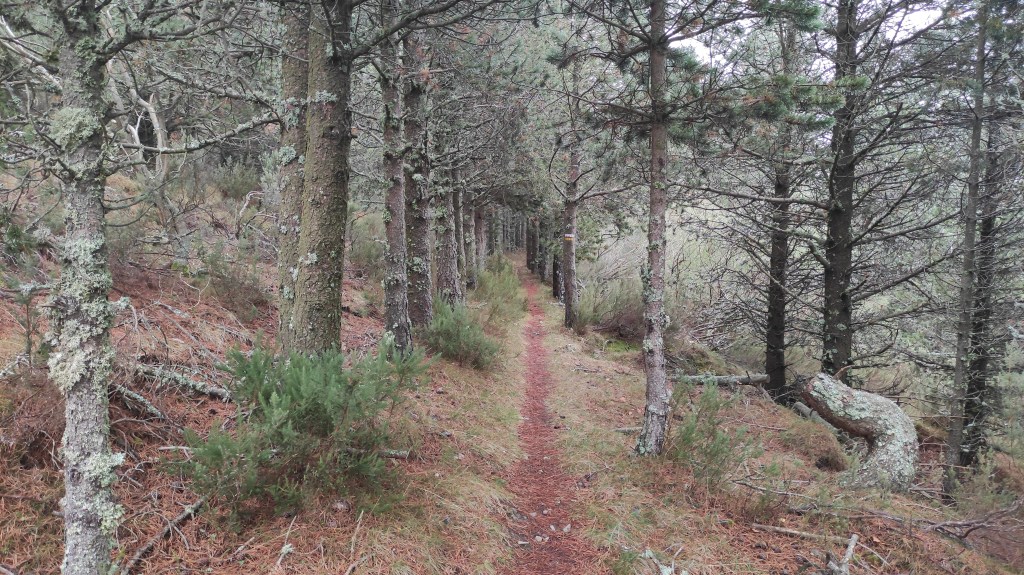 La Senda de la Muñeca es una estrecha vereda forestal, de unos dos kilómetros y medio, que avanza, entre pinos repletos de liquen e inmensas y hermosas hayas. Atraviesa amplias laderas, con bastante desnivel, que, en otoño, podemos ver cubiertas de hojas, troncos y preciosas piedras musgosas. Su recorrido angosto, serpenteando entre las hayas y pasando entre hileras de pinos perfectamente alineados, nos permite disfrutar de un magnífico paisaje, lleno de color, con una hermosa mezcla de los colores de las hayas: verdes-lima, amarillos, ocres, anaranjados y marrones, dependiendo de la época del año en que la recorramos, con los verdes intensos de pinos negrales y acebos.