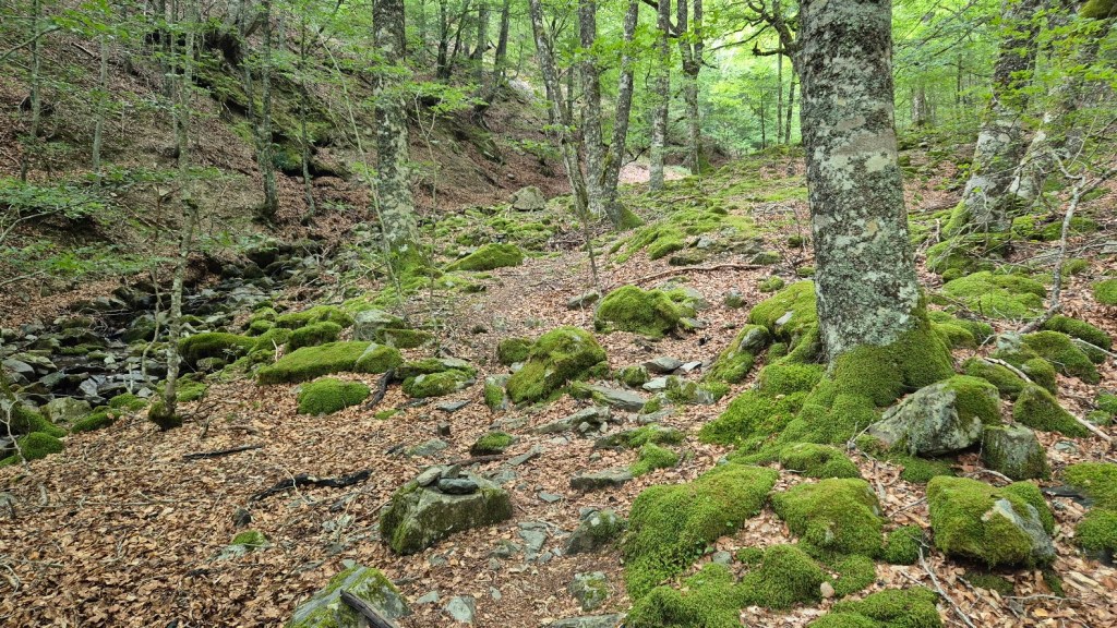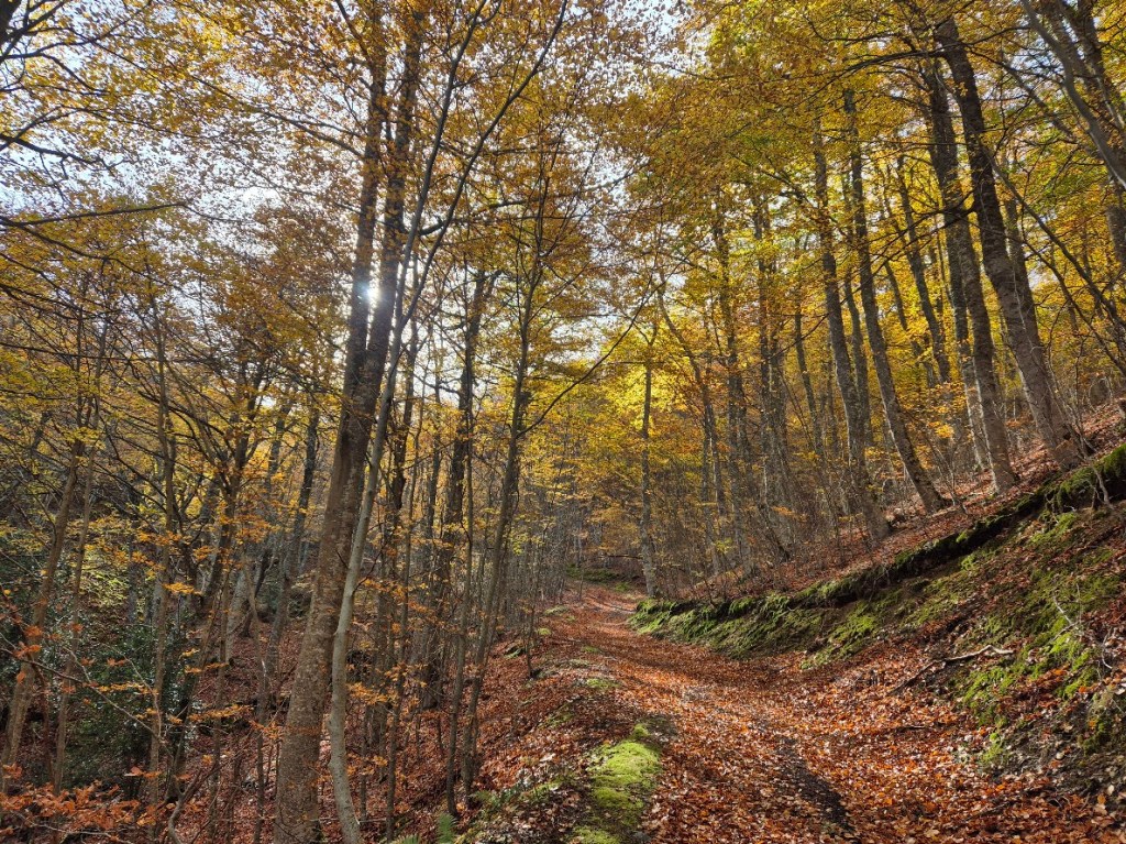 Aunque es un poco larga, la ruta es maravillosa. Llama la atención por la gran variedad de habitats naturales que divisamos, sus frondosos y abundantes bosques, sus valles fluviales…, y despierta un gran interés ambiental. Los amantes de la naturaleza, en esta época primaveral y en otoño, pueden disfrutar de múltiples y auténticos cuadros impresionistas con mezclas de colores pocas veces vistas. Los amantes de la paz pueden imbuirse en un lugar singularizado por su impresionante silencio. Los que busquen literatura, nada más sencillo que perderse en la magia de la Muñeca y reproducir el cuento de Caperucita y el lobo en medio de estos bosques. Los apasionados de la historia, revivir la época de gloria de la frenética actividad textil en la Senda de los Batanes. Porque, aquí, todo es divino, asombroso, inexplicable. En resumen, una gran marcha que nunca olvidarás. En otoño, te cautivará.