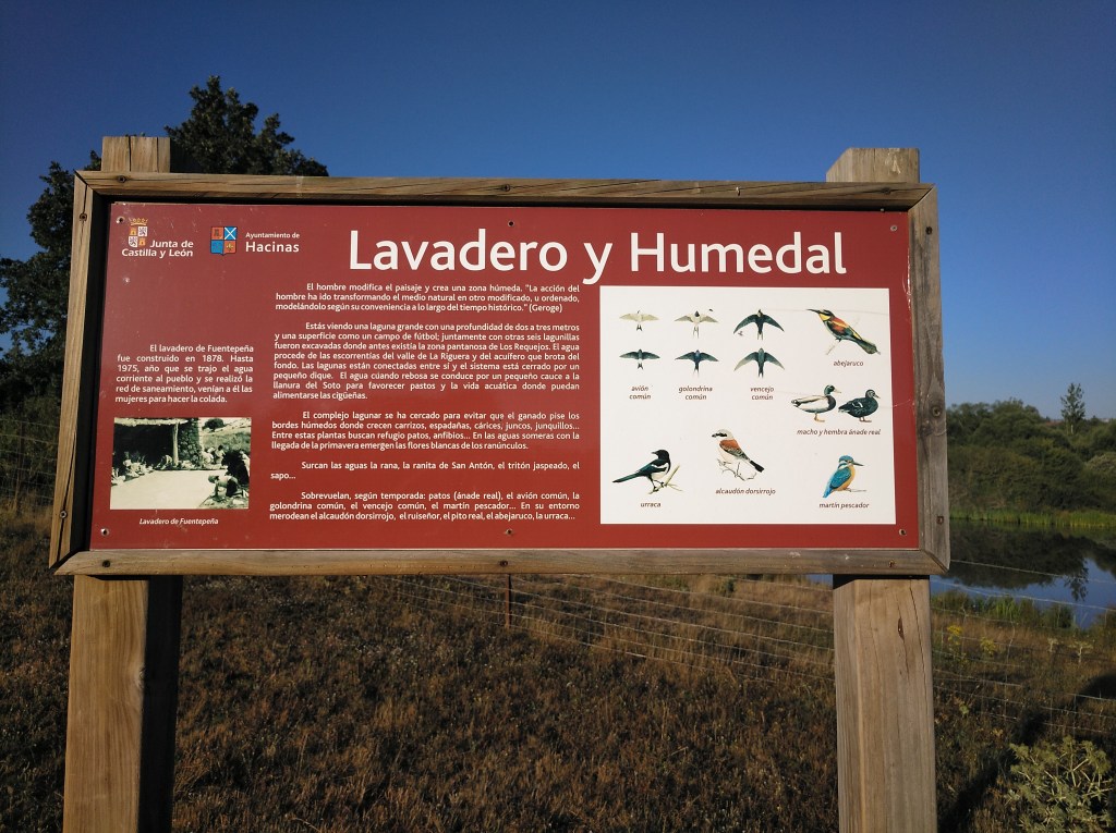 Abandonamos San Marcos por el sur y nos encaminamos, por el camino de Cabezón, hacia otros lugares espectaculares de la ruta: La Roblada, Los Valles, Peña Valdespinos y las Tenadas de Valdemolino. A 1,5 km del pueblo encontramos la joya de la corona, el Humedal (km 10,2), varias lagunas pequeñas y una principal en las que muchas aves migratorias encuentran refugio y alimento. Larga parada y tiempo para recordar viejas anécdotas de nuestra niñez ayudando a nuestras madres a portar la ropa hasta este lavadero con una destartalada carretilla.