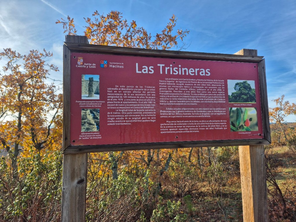 Las Trisineras es el yacimiento del árbol fósil que está expuesto enfrente del Museo del Árbol Fósil. Se extrajeron 6 m y todavía quedan enterrados muchos más. Se cree que podría medir casi 30 metros. Ha sido descrito por los investigadores Luis García Esteban y Paloma de Palacios de la Universidad Politécnica de Madrid, como una especie nueva, que ellos han denominado Protopodocarpoxylon hacinensis.