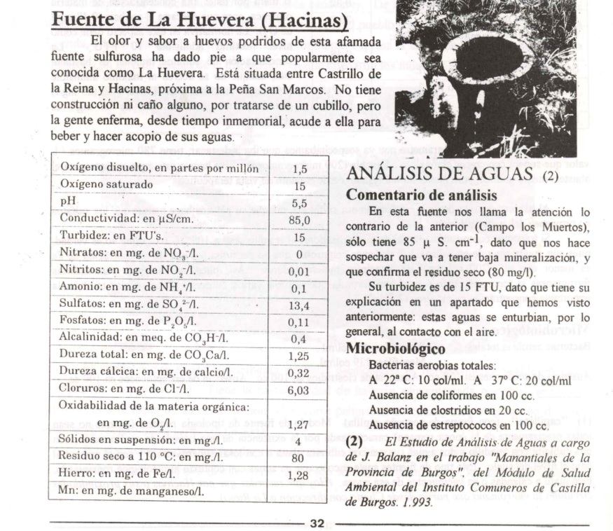 En el número 65, página 32 de la Revista Amigos de Hacinas que puedes encontrar en su WEB, aparece un interesante artículo de Elías Rubio Marcos sobre las fuentes de Hacinas y la calidad de sus aguas.