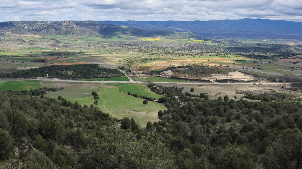 La Sierra de las Mamblas, pequeño macizo de característico perfil con forma de seno que nos regala unas maravillosas vistas tanto de las Tierras de Lara como del Valle del Arlanza, se sitúa en el Parque Natural de Sabinares del Arlanza-La Yecla, junto a las poblaciones de Hortigüela, Mambrillas de Lara, Cuevas de San Clemente, Mecerreyes y Covarrubias, en la comarca de Arlanza, a 40 kms de Burgos y a 26 de Salas de los Infantes. Hoy recorremos dos de las cuatro alturas significativas que tiene la serranía: Muela del Castillejo (1347) y su máxima altura, la Muela de las Mamblas (1376 m); las otras dos: Cerro San Cristóbal y Peña la Torca las hacemos en nuestra Ruta II saliendo desde Hortigüela.