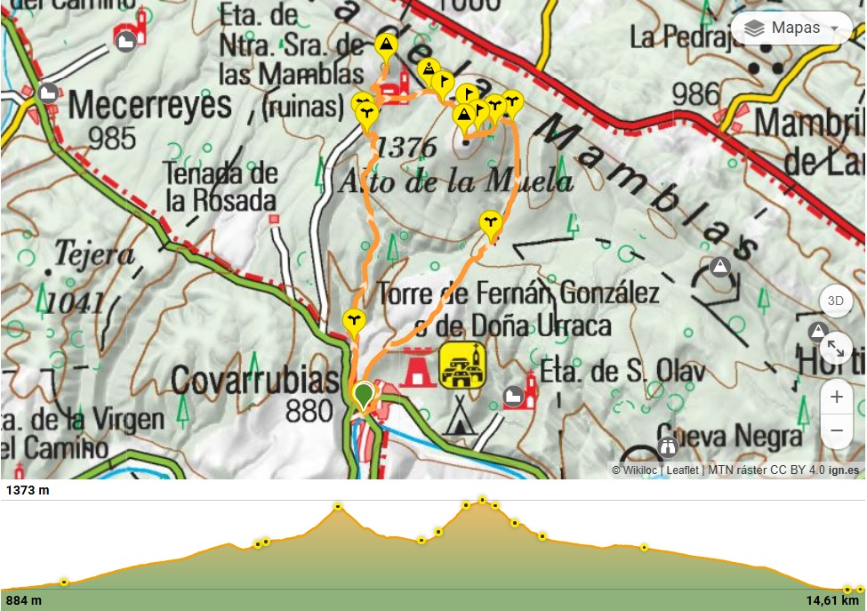 La sierra puede abordarse desde diferentes puntos o poblaciones, pero, en esta ocasión, hemos elegido Covarrubias con la finalidad principal de recorrer la parte occidental de la Sierra de las Mamblas, pasando por la Muela del Castillejo y la Muela de las Mamblas; contemplar vistas fantásticas de varias poblaciones medievales, así como de la Sierra de Lara, Picos Mencilla y un trozo del Trigaza al norte, y el Pico Campiña, la Peña de Carazo, el Gayubar y las Peñas Cerveras al otro lado; disfrutar del tesoro botánico que guardan estas tierras: extensos bosques de sabina albar, encina y quejigo, y de la abundante fauna salvaje que habita en estos montes: : rapaces, corzos, jabalíes etc… Y como guinda, hacer una visita a la histórica villa de Covarrubias que pondrá broche a un día inolvidable por la cuna de Castilla.