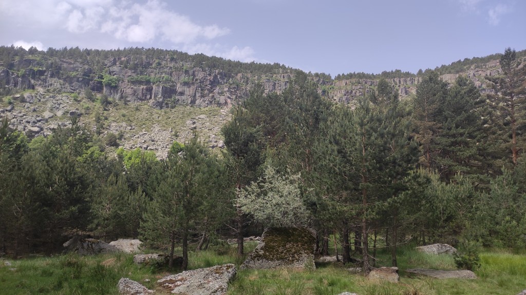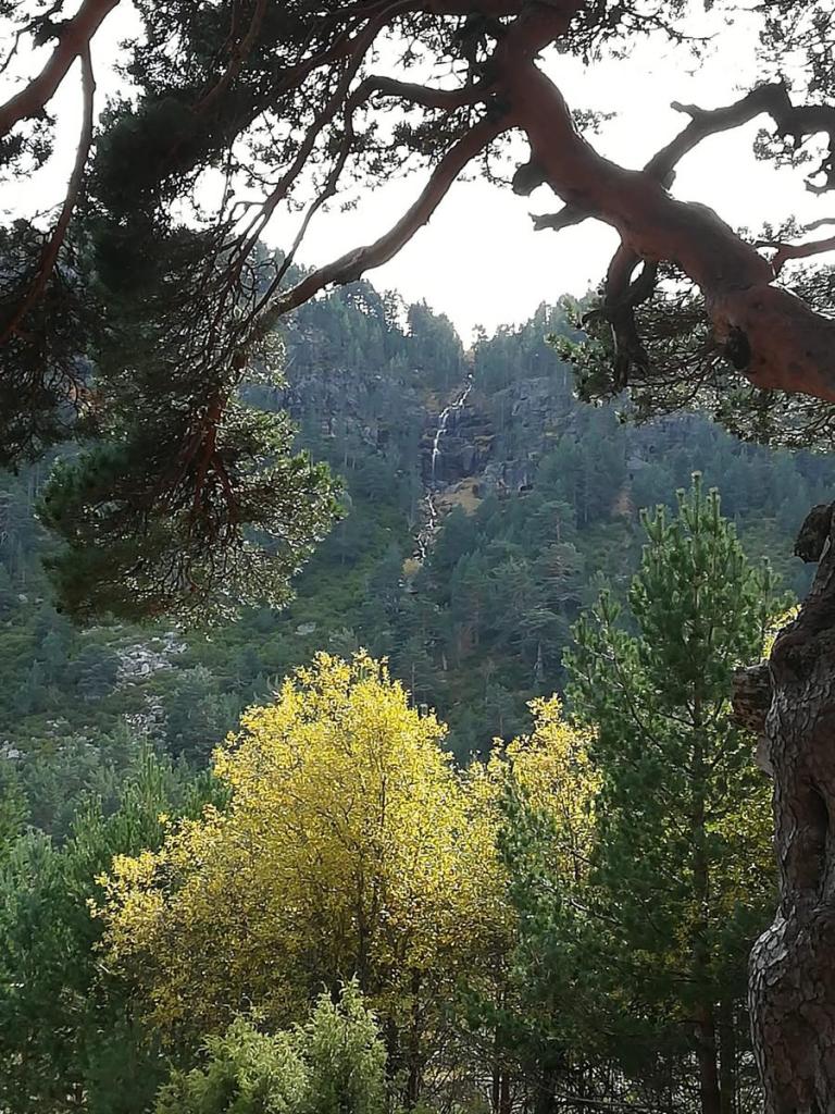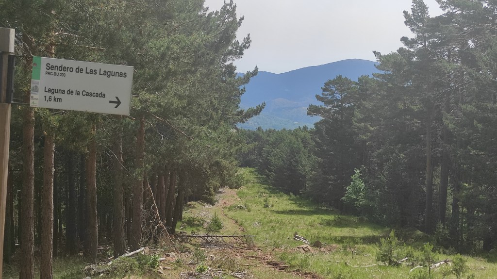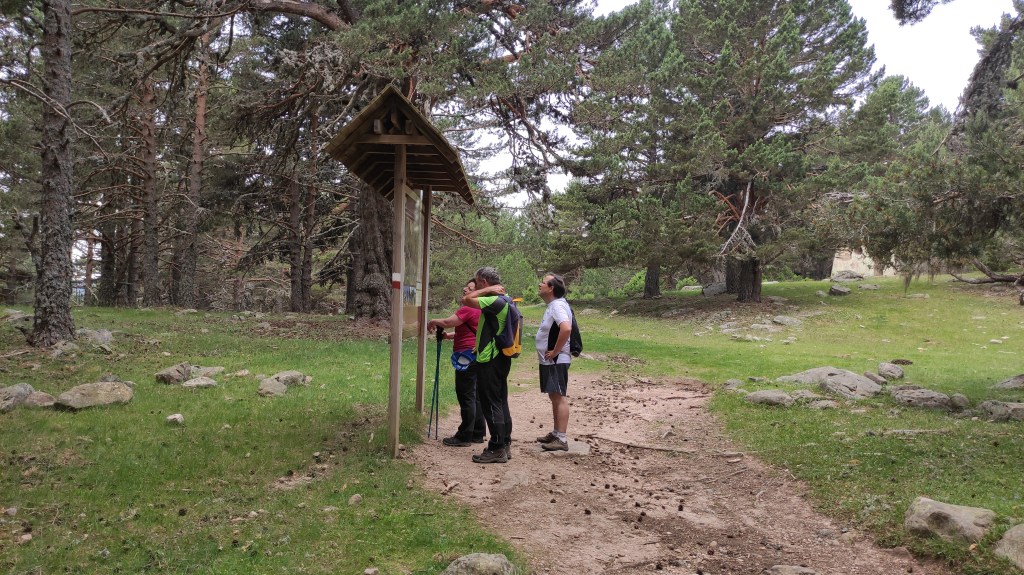 Aunque es muy habitual empezar en el primer aparcamiento (Paraje de la Serna), que es el parking más cercano hasta el cual se permite el acceso en coche a cualquier hora del día, iniciamos la ruta en el segundo aparcamiento. Para llegar aquí, hay que coger un autobús que te sube hasta la laguna desde el Paraje de la Serna (sólo hace el trayecto los fines de semana de verano y en fechas muy puntuales), o bien tomar la opción de los buenos senderistas: caminar por la carretera o seguir un precioso sendero turístico, la Senda del Bosque, que va junto al Arroyo de la Laguna durante unos dos kilómetros desde el Paraje de la Serna -este tramo no está incluido en el track, ya que, en esta ocasión, nosotros lo hicimos andando por la carretera-.