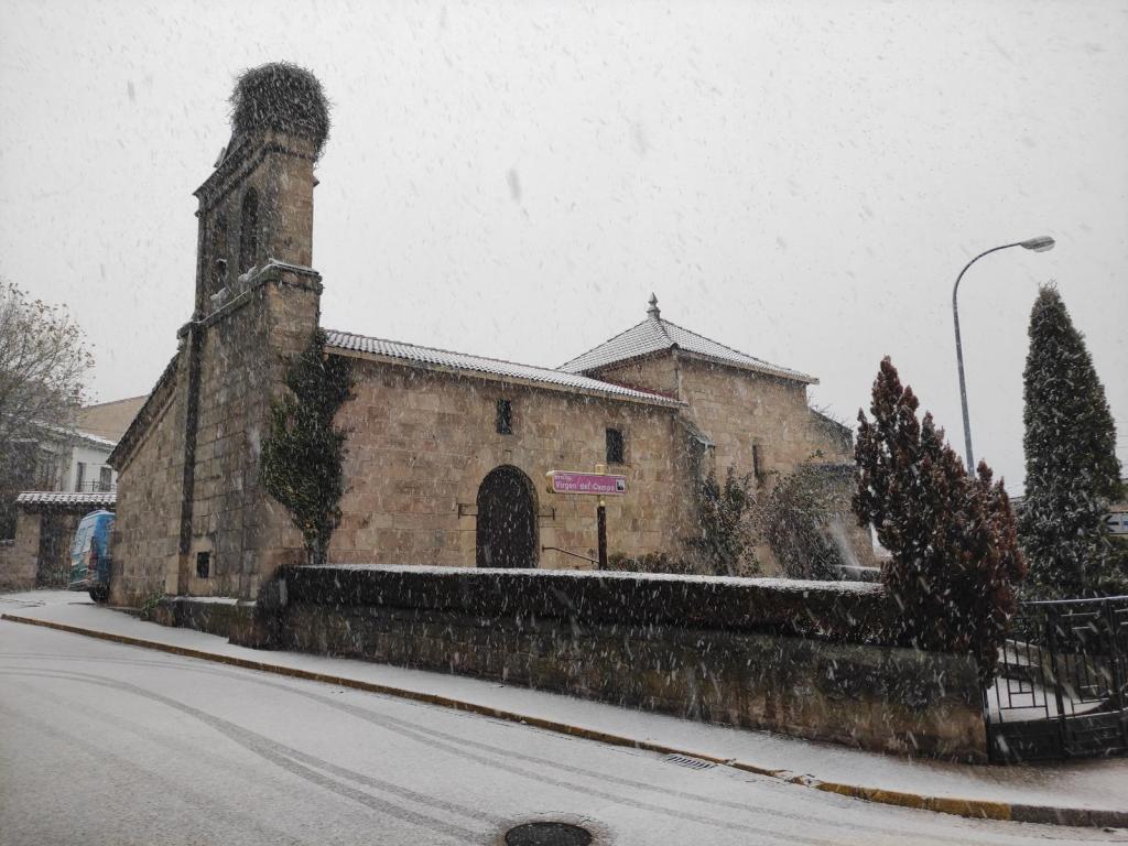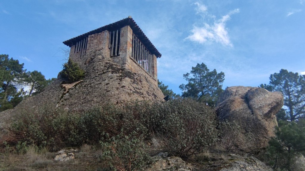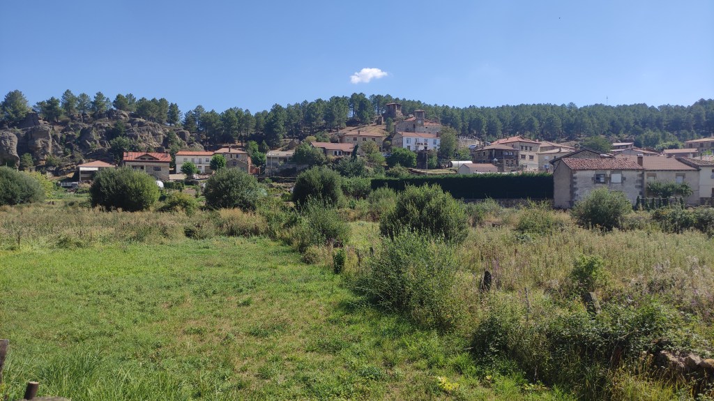 Abandonamos la Aldea del Pinar por la Calle de Burgos y ascendemos por una estrecha y mal marcada senda hasta tomar de nuevo el camino de la ida. Lo desandamos durante unos tres kilómetros. Tenemos cuidado de no tomar un primer sendero que tiene una indicación a Rabanera del Pinar. Seguimos unos 400 metros y, ahora sí, nos vamos a la izquierda para dirigirnos hacia la Torre-campanario del pueblo. Las vistas desde esta torre-vigía son espectaculares y la estampa del pueblo, preciosa. Bordeando el campanario, descendemos hasta la Iglesia de San Juan Bautista y, posteriormente, hasta el bonito edificio del Ayuntamiento, desde donde nos vamos acercando a nuestro punto de partida.