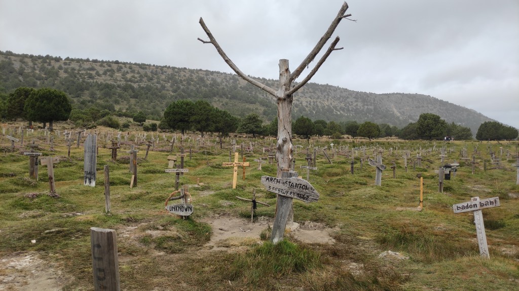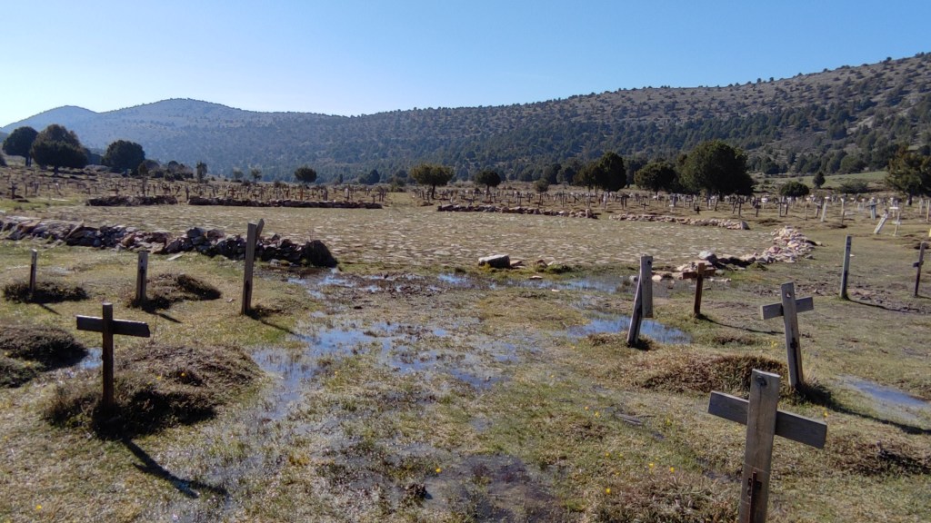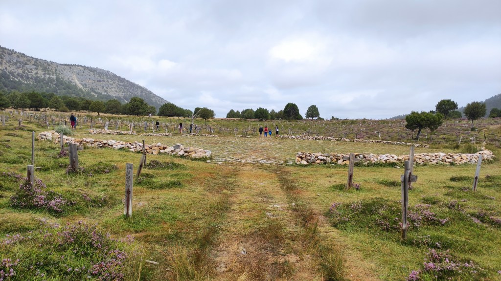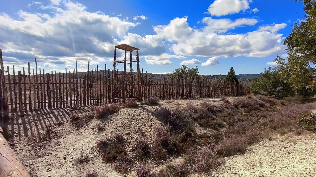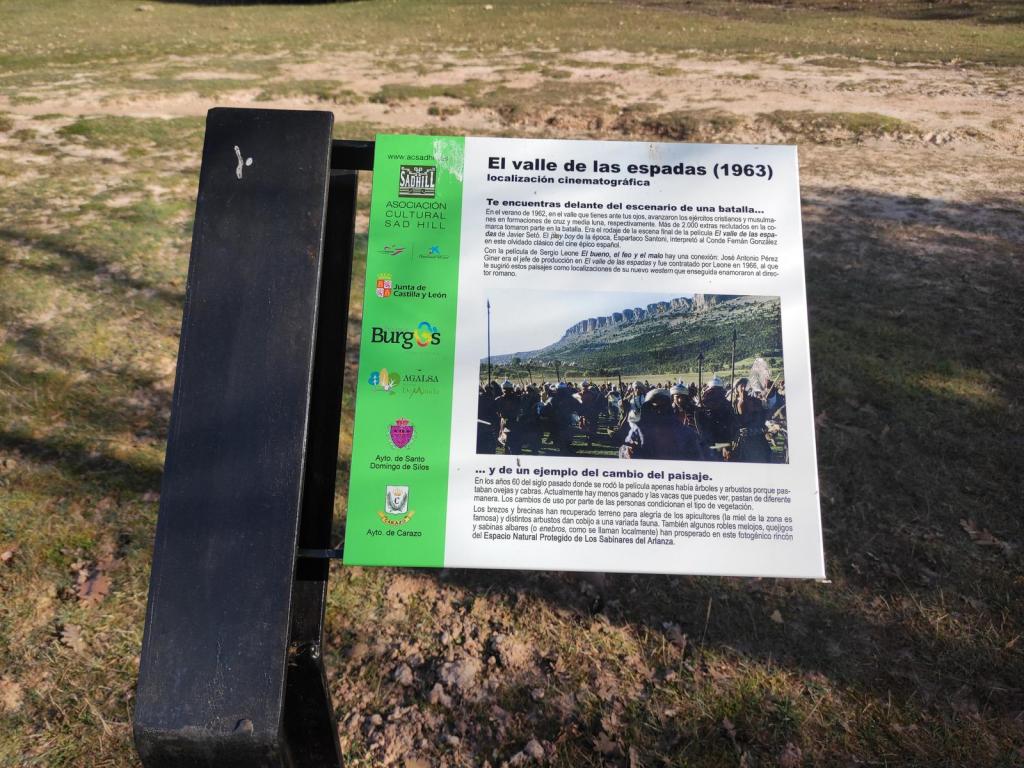 Esta preciosa ruta se localiza entre los términos municipales de Carazo, Contreras y Santo Domingo de Silos, en la Sierra de la Demanda, a 12 kms de Salas de los Infantes y a 67 de Burgos. Tiene el objetivo de recorrer dos de los cuatro lugares burgaleses en los que tuvo lugar el rodaje de la película «El Bueno, el Feo y el Malo» en el año 1966: el campo de prisioneros de Betterville y el cementerio de Sad Hill. En Betterville, próximo a la localidad de Carazo, que también visitamos, recientemente se han reconstruido, con las sabinas que ardieron en el aparatoso y desgraciado incendio de 2022, la pasarela que atravesaban los prisioneros para sortear el foso, la empalizada y algunas torretas de vigilancia. Quedarían todavía pendientes las demás torres, las casetas y algunas cabañas que aparecen en la película. En este campo es donde acabaron como prisioneros Tuco (Eli Wallach) y Rubio (Clint Eastwood), y donde se rodó una escena emulando un campo de concentración. Para ello, se construyeron un fuerte con profundos fosos, una empalizada y varias construcciones anejas donde se producían las torturas, las ejecuciones y todo tipo de atrocidades propias de la guerra. Inspirado en la Prisión de Andersonville, Georgia, Estados Unidos, Sergio Leone hizo que, mientras se realizaban las torturas, un grupo de músicos traídos de Salas, Covaleda, Arauzo de Miel y Barbadillo del Pez entre otros, interpretara música de banda para acallar los gritos de las torturas.