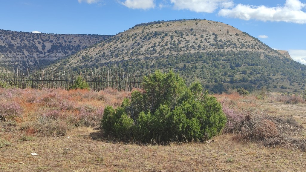 La ruta, que transcurre entre bellísimas sabinas albares o enebros, robles centenarios y alguna encina suelta, ofrece un paisaje espectacular. El impresionante silencio que reina en la zona, junto con la ausencia de cables, postes y otros signos de la civilización moderna, hace que estemos paseando por un lugar único e irrepetible en el que uno sólo puede dejarse llevar por la exquisita belleza de este entorno. Si vas a Sad Hill, no te conformes con ver el cementerio, date un paseo hasta Betterville y Carazo (ruta I) o desde Carazo pasando por Betterville (ruta II), que no lo olvidarás nunca.