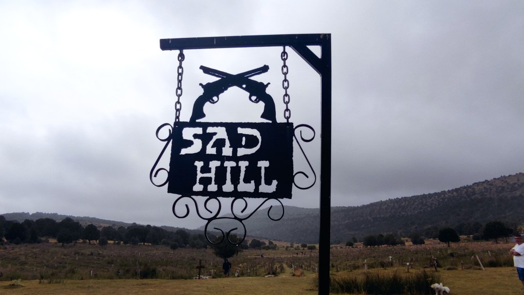 Por otro lado, en Sad Hill se rodó la escena más importante de la película en la que Clint Eastwood, Eli Wallach y Lee Van Cleef se disputan en un duelo a tres o «triello» los 200.000 dólares que están escondidos en la tumba del desconocido. La zona fue elegida por Sergio Leone por la similitud de estos escenarios naturales con los de Nuevo México y río Grande. El cementerio estuvo totalmente abandonado hasta el año 2015 en el que fue recuperado gracias al gran trabajo y colaboración de voluntarios de la Asociación Cultural Sad Hill. De paso, una breve visita al pueblo de Carazo, que, si actualmente no tiene muchas cosas destacables, está cargado de historia y rodeado de impresionantes y hermosas peñas.